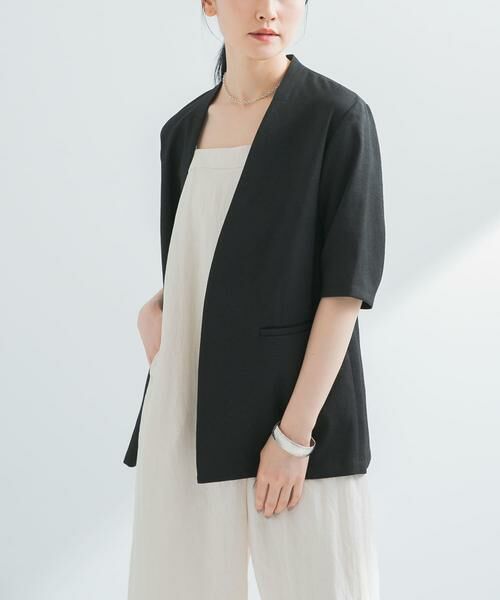 フロントには、あえてボタンを付けず、きれいめにもカジュアルにも合わせやすいデザインに。ジャケットのきちんと感が苦手な方でも取り入れやすい一着です。