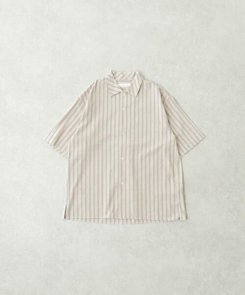 清涼感あふれるストライプ柄が目を引く、スタンダードな開襟シャツ。