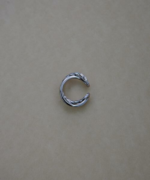 ツイストと線のラインが8の字のにクロスしたイヤーカフ。耳にあたる部分も丸い先端なので非常に痛くなりにくいです。ピアスやイヤリングとのコーディネートにもおすすめです。