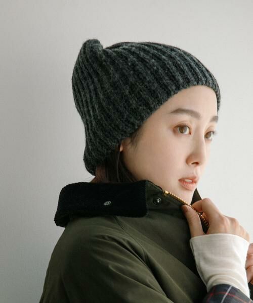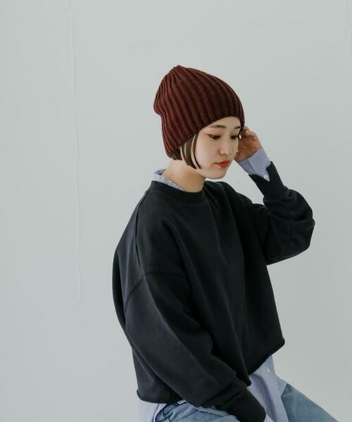 カジュアルすぎない素材とデザインで仕上げたニット帽。