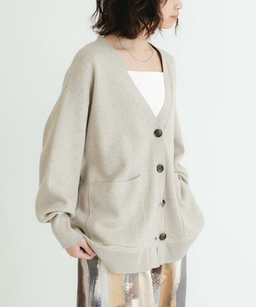 メランジ調のさり気ないミックス生地がポイントのカーディガンを、スタイリングに馴染みの良いベーシックカラーでご用意。