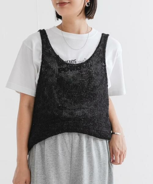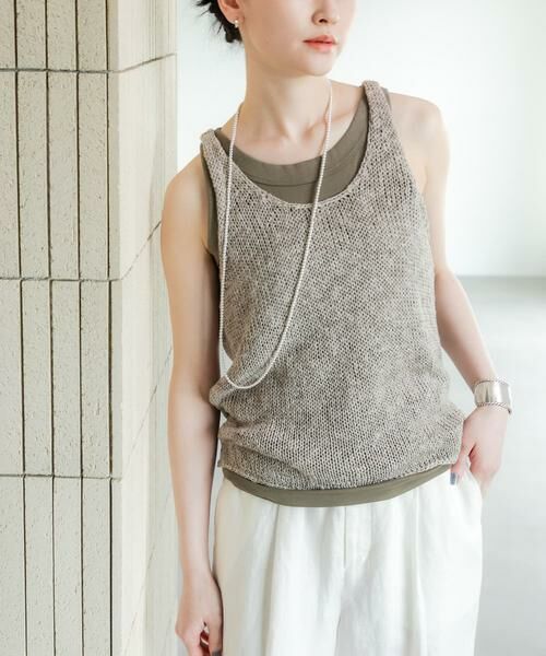 光沢感のある糸とスラブの凸凹が上品で、ざっくりとした編地がシンプルになりがちな夏のコーディネートをアップデートしてくれます。
