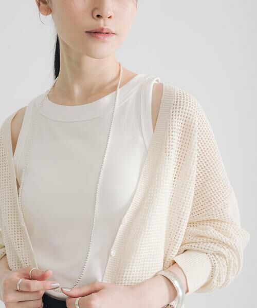 ジャケットやカーディガンのインナーとしてはもちろん、一枚でヘルシーに着用するのもおすすめ。