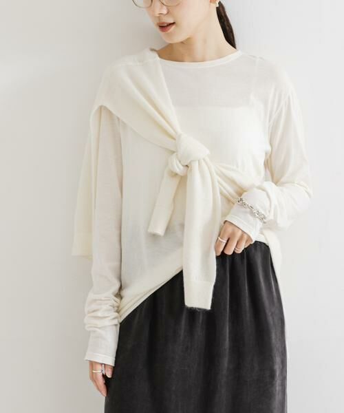同素材のポロ衿ニットに合わせて腰に巻くのが、今年らしい着こなしでおすすめです。