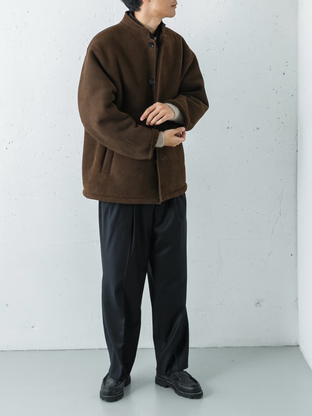 ラグジュアリーなシープムートンを贅沢に使用した、究極のミニマルジャケットが誕生。 ムートン特有の重厚感を覆すエアリーな軽さと、上品なブラウンカラーが魅力です。