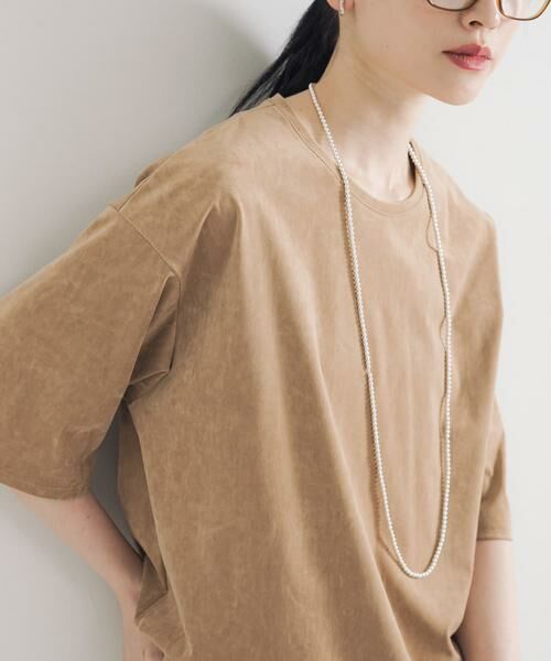 薄手でやや張り感のあるスエード調のカットソー素材は、カジュアルになりすぎず、洗練された雰囲気を演出します。