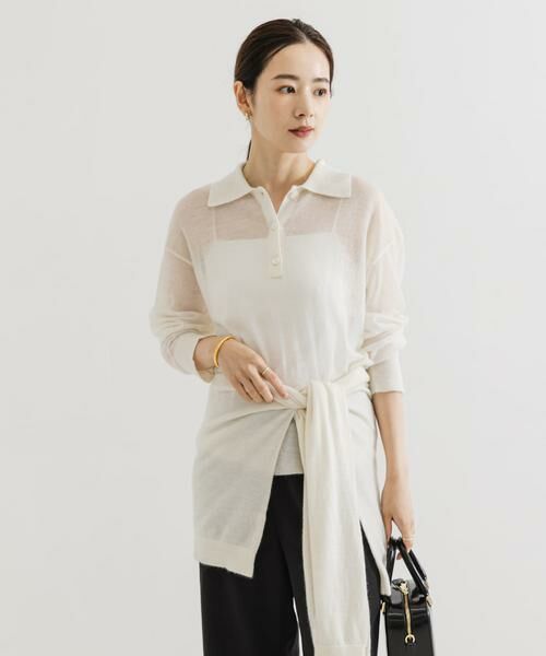 柔らかな透け感が美しい、ポロ衿付きニット。