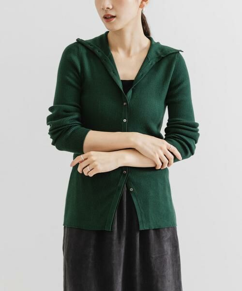 タートルネックとしてボタンをすべて閉めて着たり、開けてシャツのように着たりと、着こなしのアレンジを楽しめます。前立てに入った配色ラインがさりげないアクセントになり、一枚でも様になります。カーブパンツやボリュームのあるスカートと合わせ、裾のボタンを開けて抜け感を出すのがおすすめです。冬から春先まで長く活躍してくれるアイテムです。