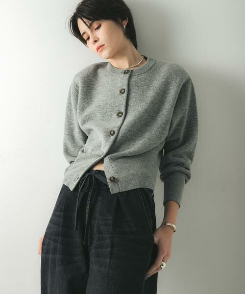 カシミヤ混のなめらかな肌触りが魅力の、着映えカーディガン。