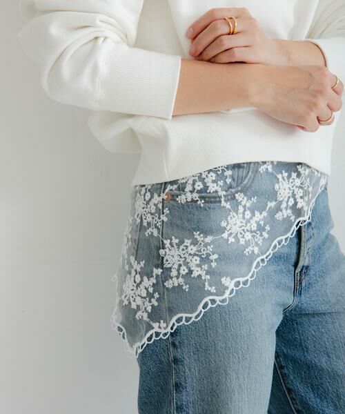 細やかなレース生地が目を惹く、三角形のスカーフ。