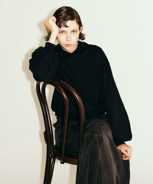大きめのフードと、ボリュームのある袖がポイント。さらに裾には、ドローコードがついていており、着方によってはモードにも着用できます。