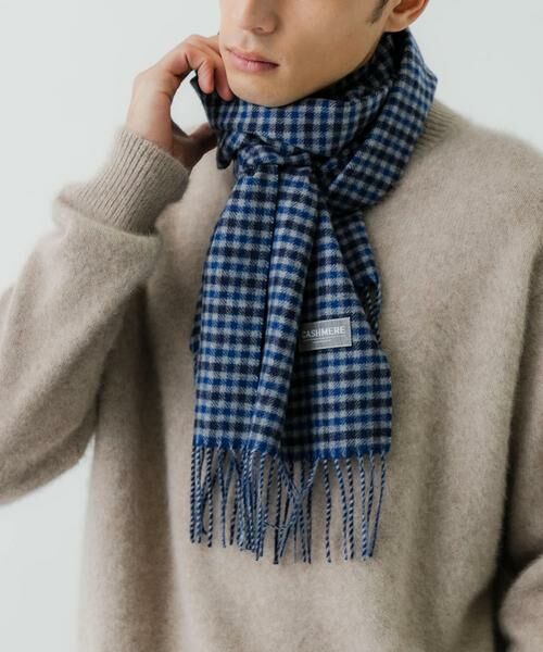 柔らかなカシミヤが首元をしっかり温めるチェックマフラーです。