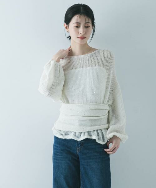 ふんわりとした素材にスパンコールを散りばめた、華やかなルーズニット。