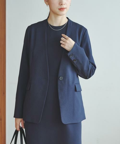 洗練されたデザインで着回し力抜群のノーカラージャケット。
