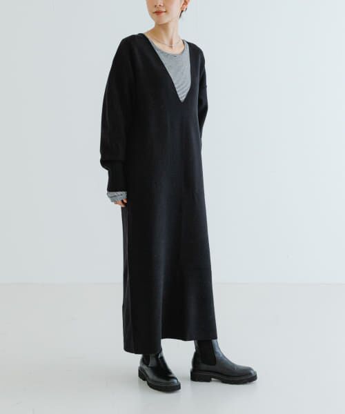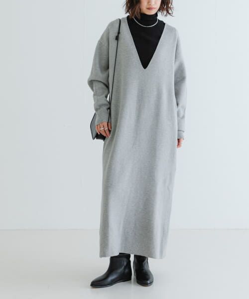 抜け感たっぷりの深Vネックデザインのワンピースは、程よくゆとりのあるサイズ感に、バストがすっきり見えるよう寸法にこだわったデザインに。
