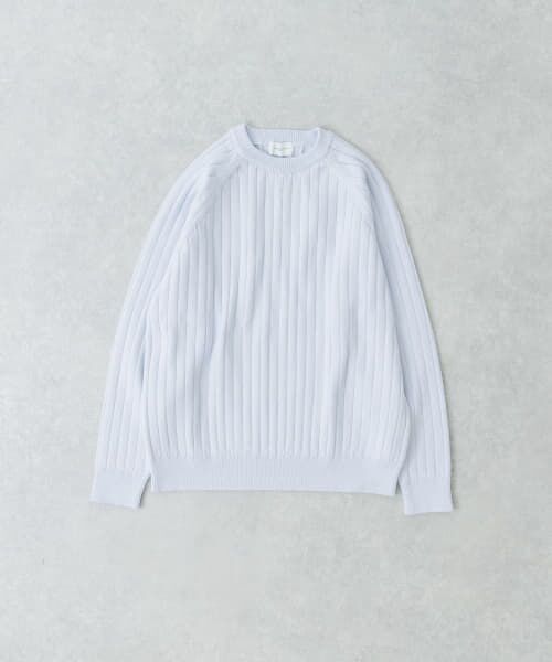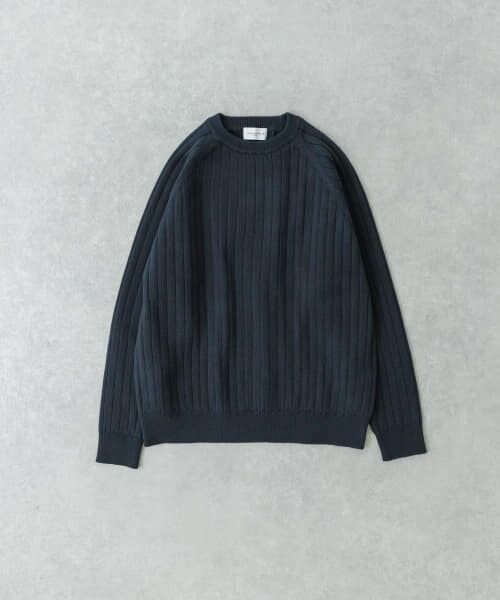 ・カシミヤ混の毛羽の少ない綺麗なコットンをミドルゲージで編み立てたワイドリブニット