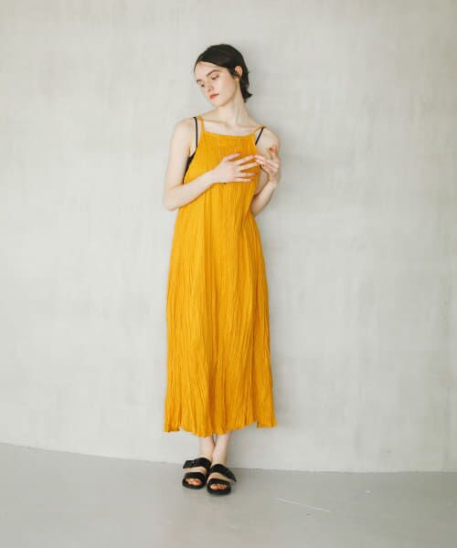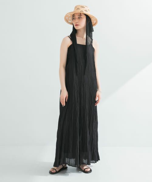 【サイズ感・着心地】でこぼことなった素材が特徴でシワも気になりにくく、清涼感があり夏場にもピッタリです◎肩紐で調節可能なので身長に合わして好きな丈感で着用できます!