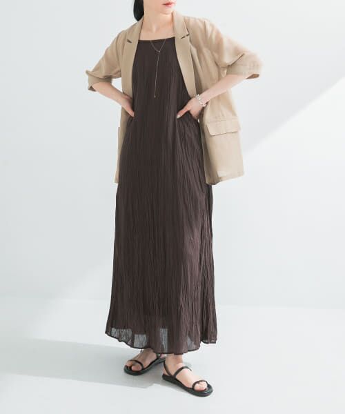 ノースリーブやタンクトップと合わせて、ジャケットを羽織ると、ラフになりすぎない大人なスタイルに。暑い夏に重宝する、今季一押しのワンピースです。
