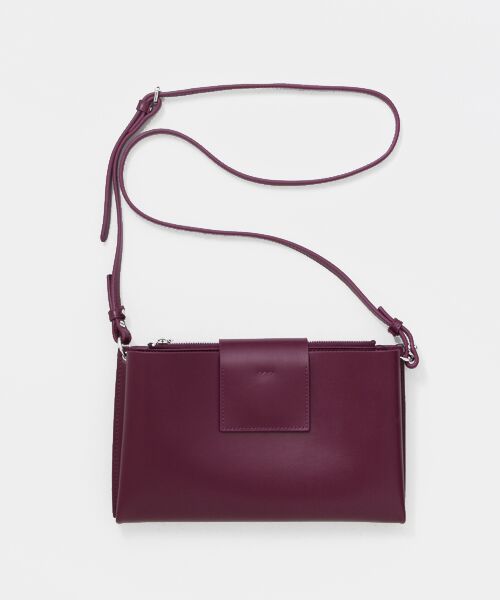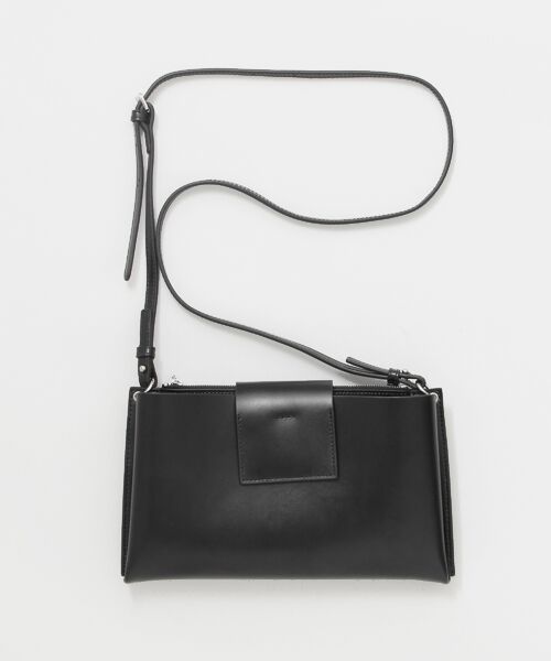 無駄のないシンプルなデザインが魅力的なショルダーバッグ。艶やかなレザーが上品で女性らしさを演出。