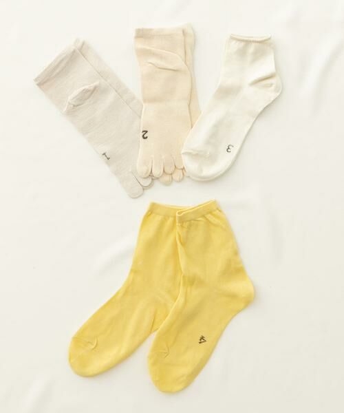 ・4足目は糸の太さが均一で毛羽が少なく、さらりとなめらかな風合が特徴のコットンを使用し、 薄手にゆったりと編み上げられています。