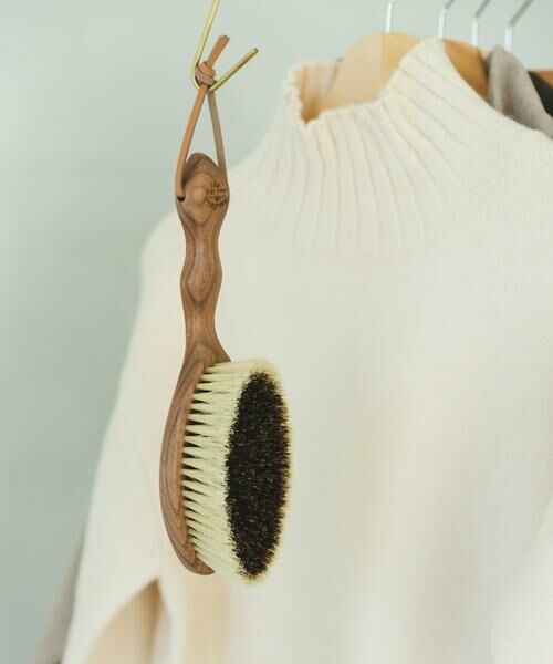 外側にしっかりとした白豚毛と内側に弾力のある馬毛を使っており、衣類の繊維を極力傷つけることなく、毛玉のできやすいウールのニットやコットンで作られた洋服、また、ウール素材のブランケットやニット帽などのケアが可能。