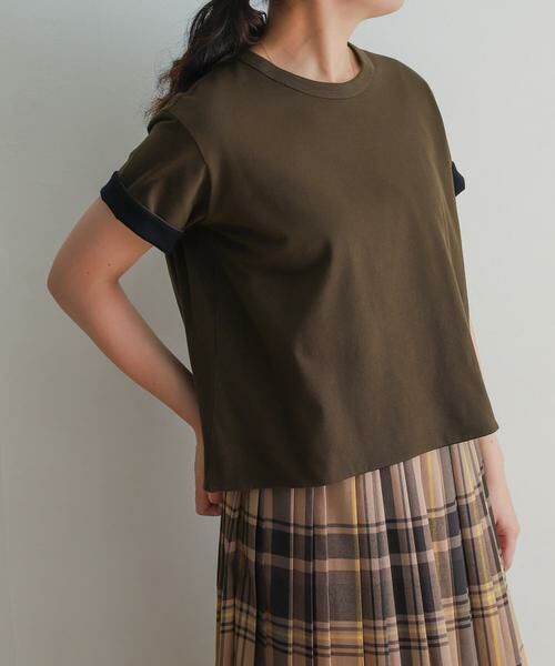 袖をロールアップすることで袖にも配色が出て印象的。