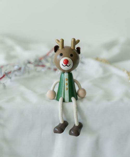 つやっとしたボディとフェルトのひげがバランスよくマッチした赤鼻のサンタクロースと、ゴールドの角がリッチな緑のお洋服を着たトナカイの2人でご用意しました。