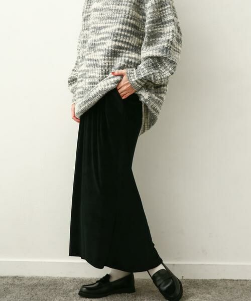 一辺倒になりがちな冬のコーディネートにベロアの光沢感が上品に映えてくれます。