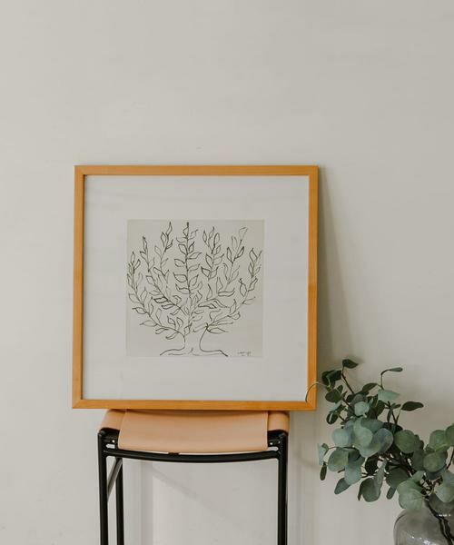 プラタナスの樹をシンプルなタッチで描いた名作「Le platane」を、天然木を使用したナチュラルなカラーのフレームに入れた、お部屋を優しく包み込んでくれるデザインに仕上げられています。