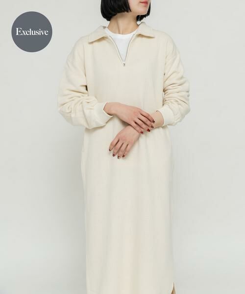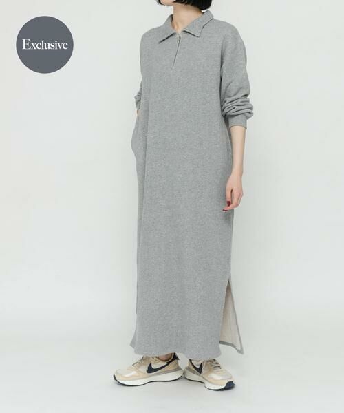 柔らかい肌触りの甘編みスウェットを使用したハーフジップワンピース。