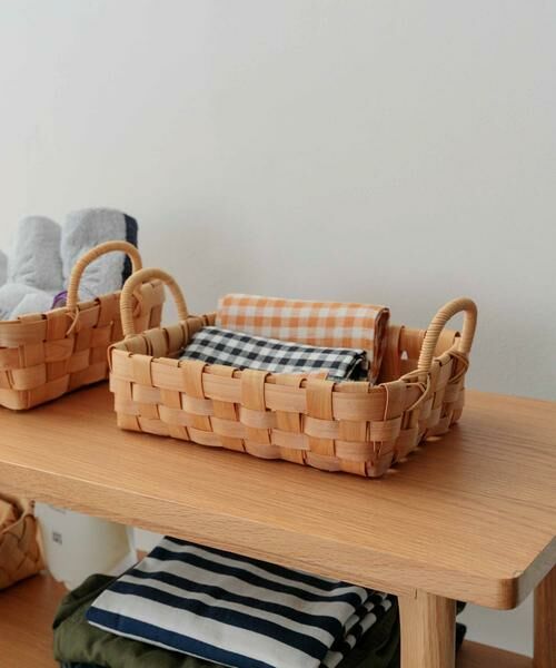 木のあたたかみを感じられる、大きめの編みこみバスケットシリーズ。