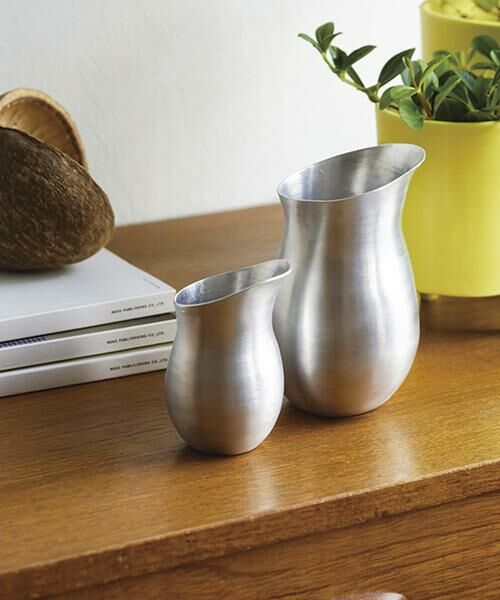 アルミのにぶいツヤがインテリアとしても映える、持ちやすい水差し。