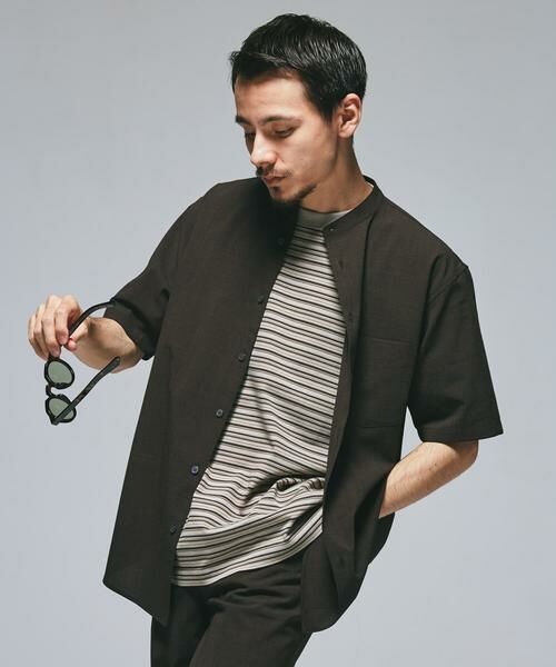 街着だけでなく幅広いシーンで気軽に羽織れるバンドカラーシャツ