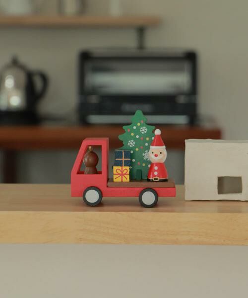 こちらのミニオブジェは、真っ赤なトラックに乗って、クリスマスプレゼントやツリーを運ぶサンタクロースの姿をイメージしたデザイン。