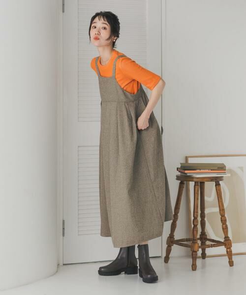 初秋見えするネップ入りのツィード生地を使用したワンピースをご用意しました。