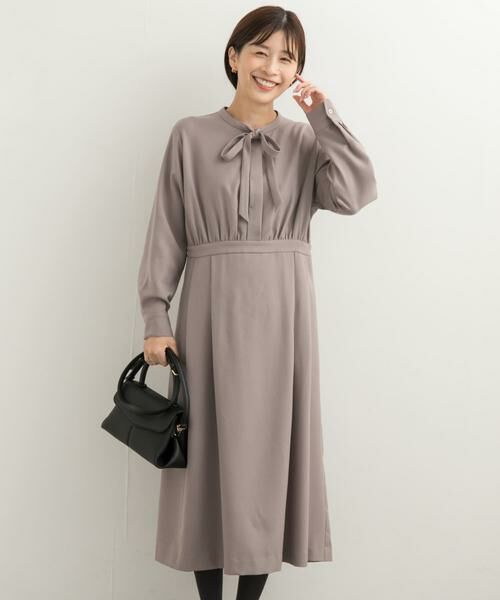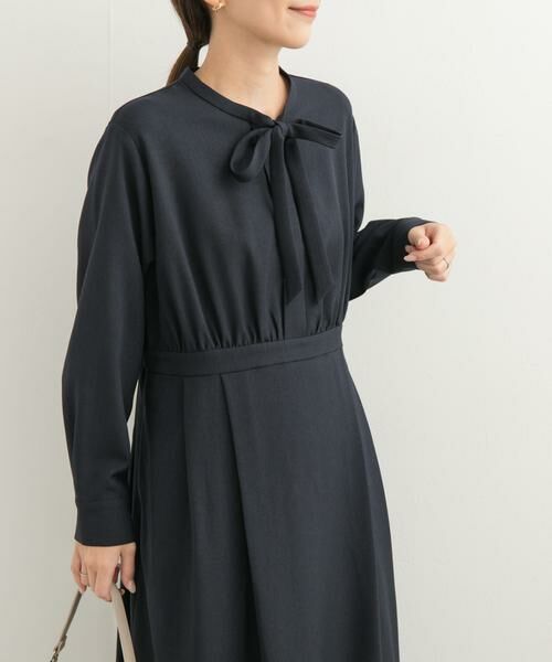 ウエストにタックやギャザーの入ったシンプルなデザインに、衿元に付いたボウタイが顔周りに華やかさを出してくれます。