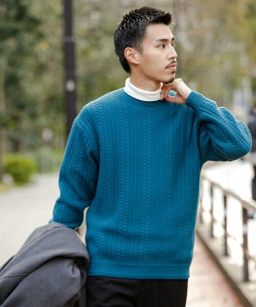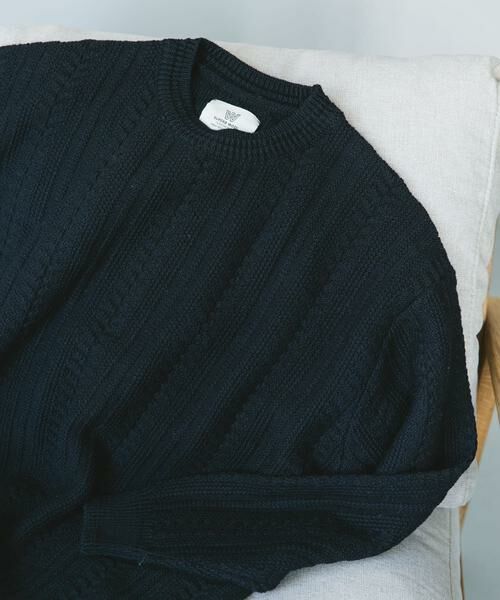 ・「SUPERB WOOL」というチュニジア産のウール100%で仕立てたクルーネック型のケーブルニット。