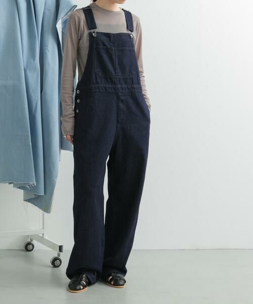 プレオーガニックコットンを使用したライトオンスデニムで仕立てたサロペット。