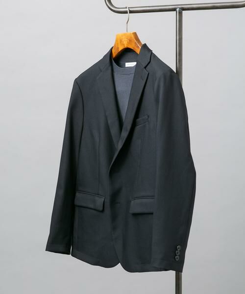 ウールライクなポリエステル100%の生地を使用したジャケット。