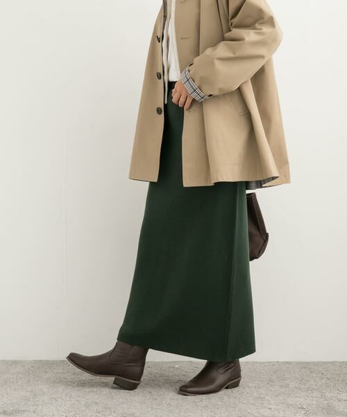 きれいな表面感のスムースニットスカートは、縦のラインを演出してくれるストレートシルエットにこだわった大人の一着。