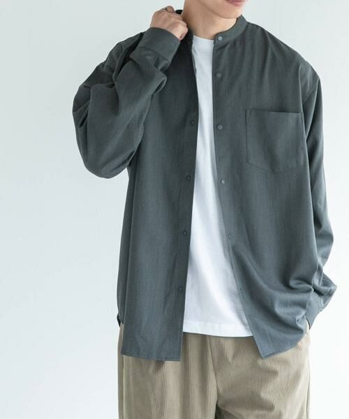 定番人気のバンドカラーシャツを秋冬に相応しい素材で仕立てました。