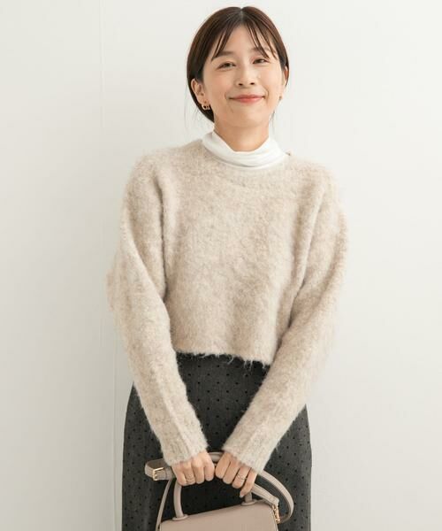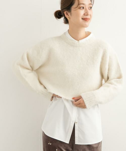 毛足の長いシャギーニットを使用したプルオーバーは、ふんわりとした表面感が冬のスタイリングに華やかさをプラスしてくれるアイテム。