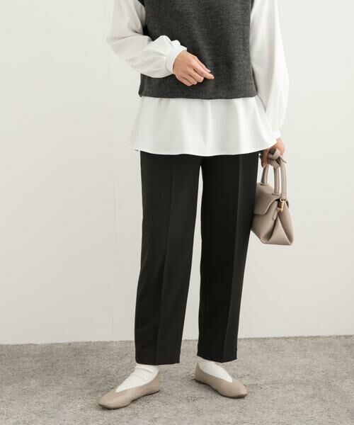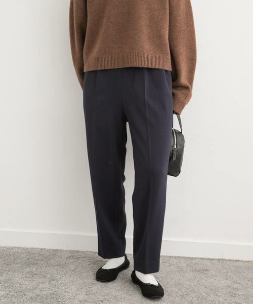 テーパードのスッキリとしたシルエットやセンタープレスが美しく、ストレッチの効いた生地やゴム仕立てのウエストがリラックスして穿くことができるため、デイリーユースしやすい一着になっています。