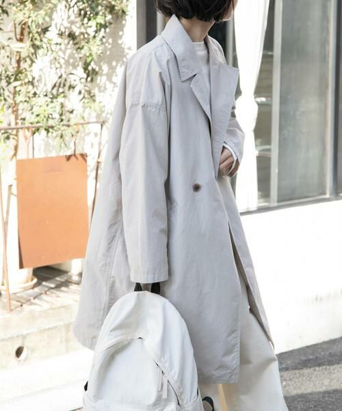 アーム周りや身幅は適度にゆとりをもたせて中のトップスは着こみやすい設定にし、ダブルボタンがアクセントに。