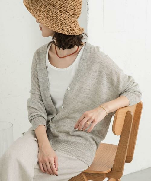 リネン100%を使用した清涼感のある生地が心地良いカーディガンは、気温の上がるこれからの季節に羽織りとして活躍する一着。