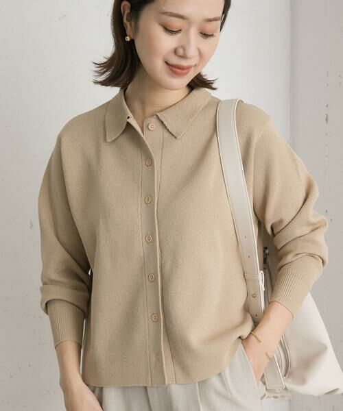 合わせやすい万能なポロニットは大きめの衿がポイントのトレンド感あるアイテム。