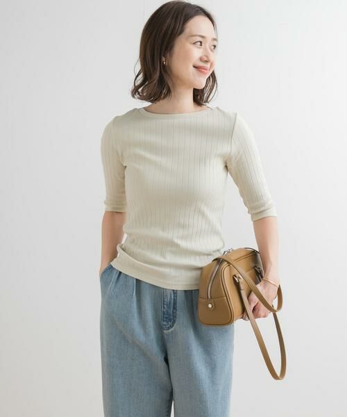 ボートネックがスッキリとした顔周りを演出し、表情の出るアイテムなので一枚でメインとしてはもちろん、カーディガンやジャケットとのレイヤードにも活躍。