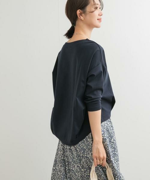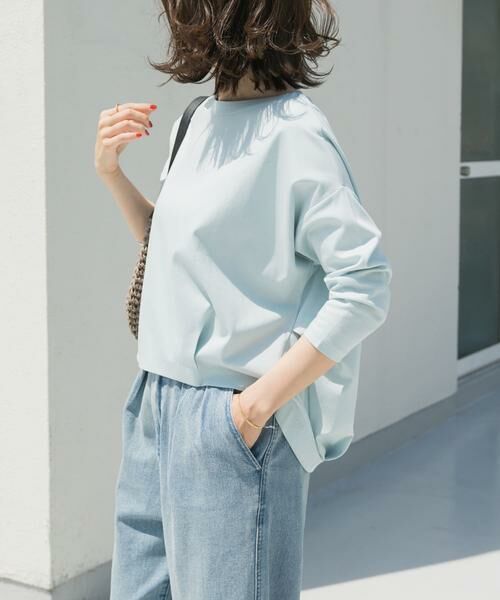 程よい膨らみの生まれるシルエットや、ボートネックのスッキリとした首元が上品な雰囲気を演出してくれるので、カットソーながらもカジュアルダウンしないアイテムに仕上げています。