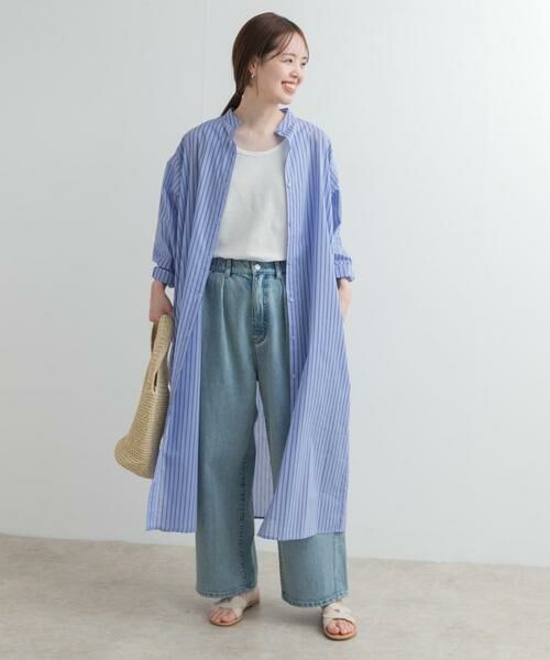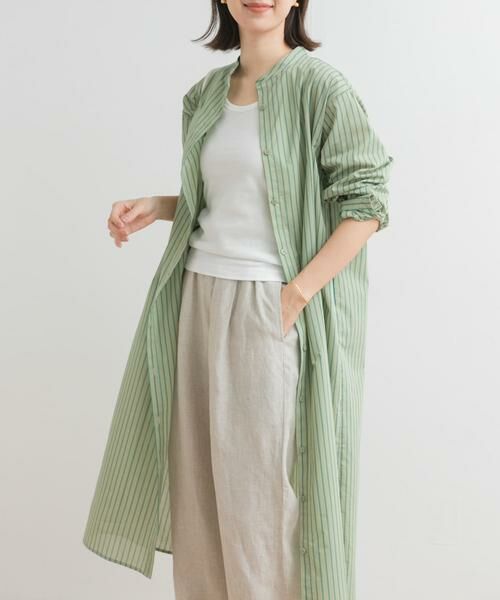 ベーシックなデザインながらも、存在感のあるカラーストライプが華やかなシャツワンピース。