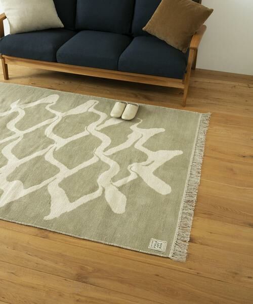 スリップウェアと呼ばれる器に描かれる模様を再現したラグ。